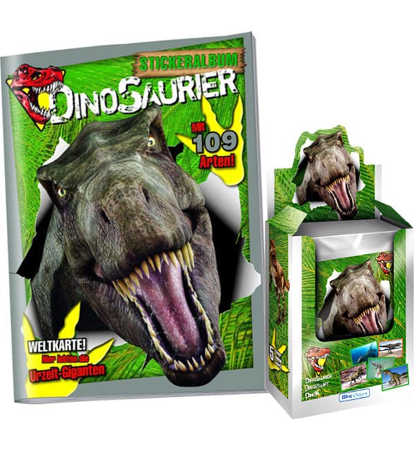 Album (German version) + box with 36 packets for the sticker collection "Blue Ocean Dinosaurier 2022". Each packet contains 5 stickers.