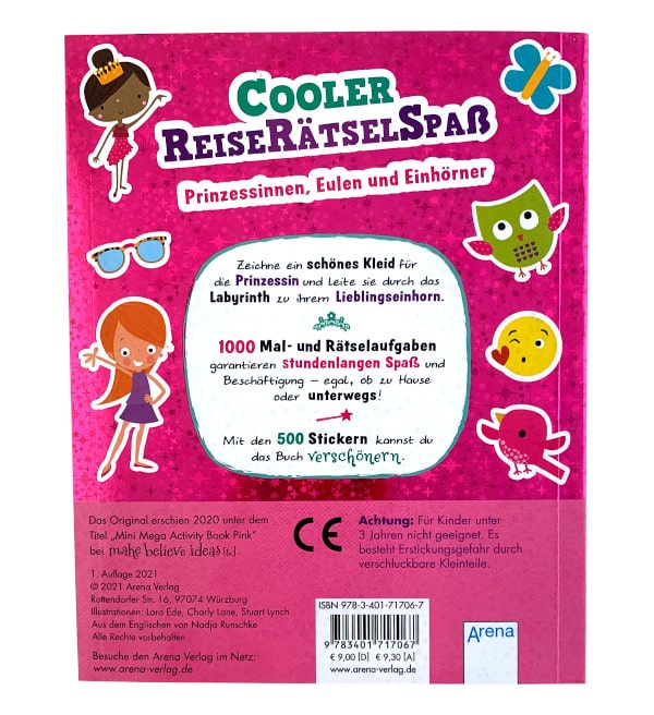 Draw a beautiful dress for the princess and guide her through the maze to her favourite unicorn. 1000 colouring and puzzle tasks guarantee hours of fun and activity - whether at home or on the road! You can embellish the book with the 500 stickers.