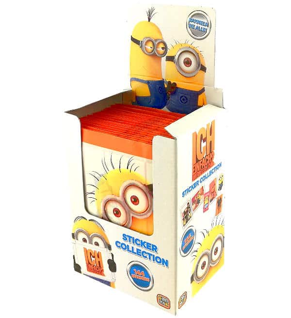 Box with 50 packets for the sticker collection "Ich Einfach unverbesserlich 2". Each packet contains 5 stickers.