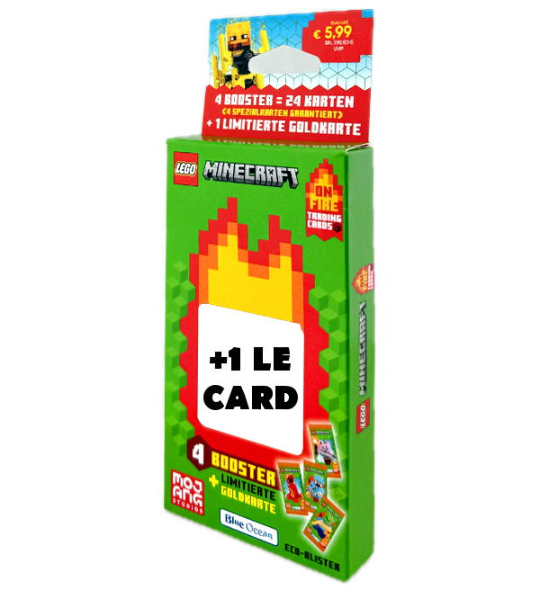 Lego Minecraft Serie 3 "On Fire" Eco-Blister with 4 boosters (=24 cards) plus 1 Limited Card. Each Blister contains 1 of the following 4 Limited Cards: