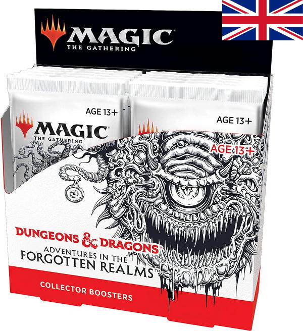 Collector Booster Box with 12 packs (English) for "Magic: The Gathering - Dungeons & Dragons: Adventures in the Forgotten Realms" Trading Card collection. Each pack contains 16 cards.
