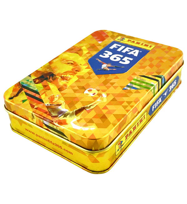 Collectors Tin of Panini FIFA 365 2018 stickers collection with 15 packets included..