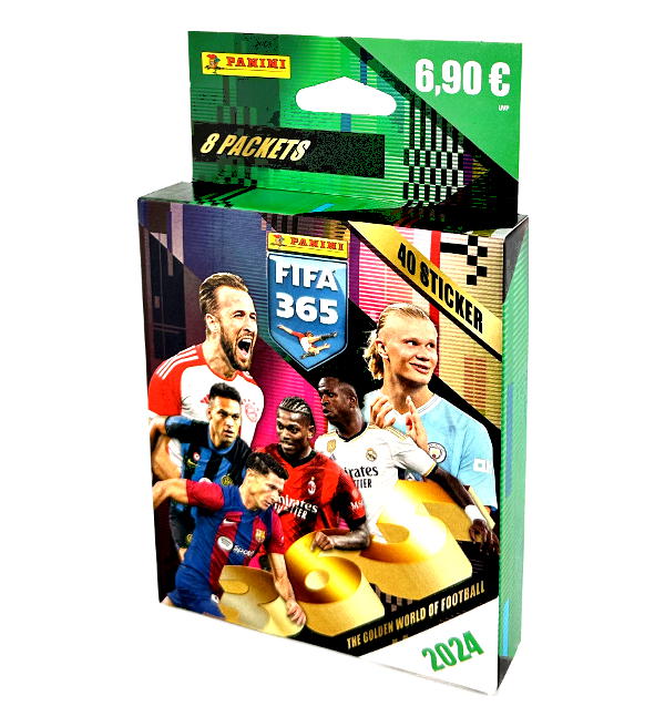 Blister with 8 packets (=40 stickers) for the sticker collection Panini FIFA 365 2024.