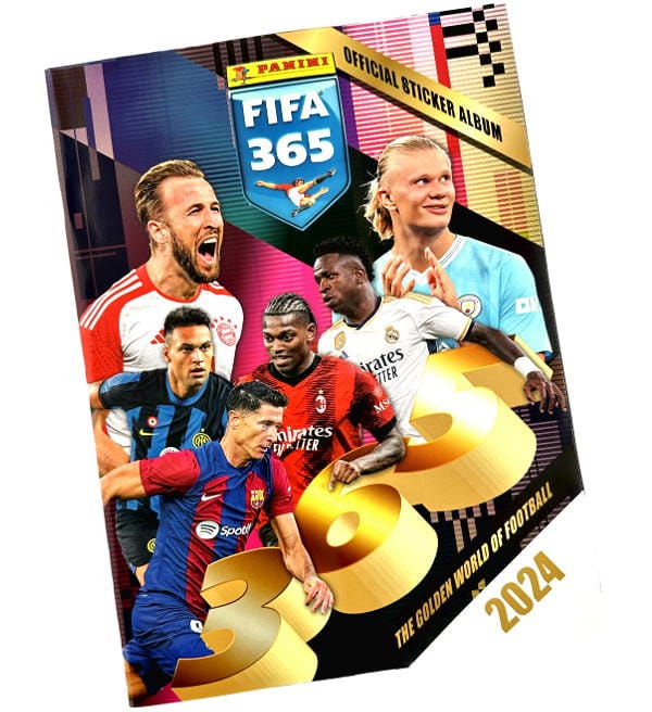 Empty album for "Panini FIFA 365 2024" stickers collection with 64 pages. In total there are 437 Panini FIFA 365 2024 stickers to collect. There are also 6 free stickers inside the album.