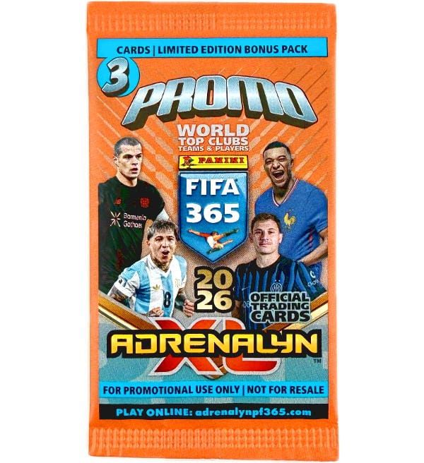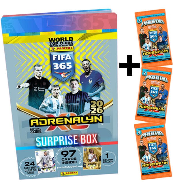 Surprise Box (Advent Calendar) + 3 Limited Edition Bonus Packs for "Panini FIFA 365 2026 Adrenalyn XL" Trading Card Game including: