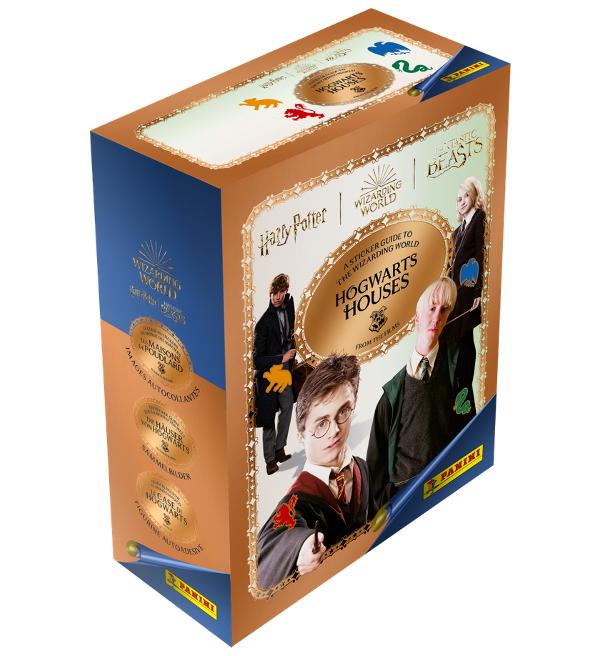 Box with 24 packets for the Panini Harry Potter Hogwarts Houses sticker collection. Each packet contains 4 large stickers with 8 different motifs (= 192 individual stickers).