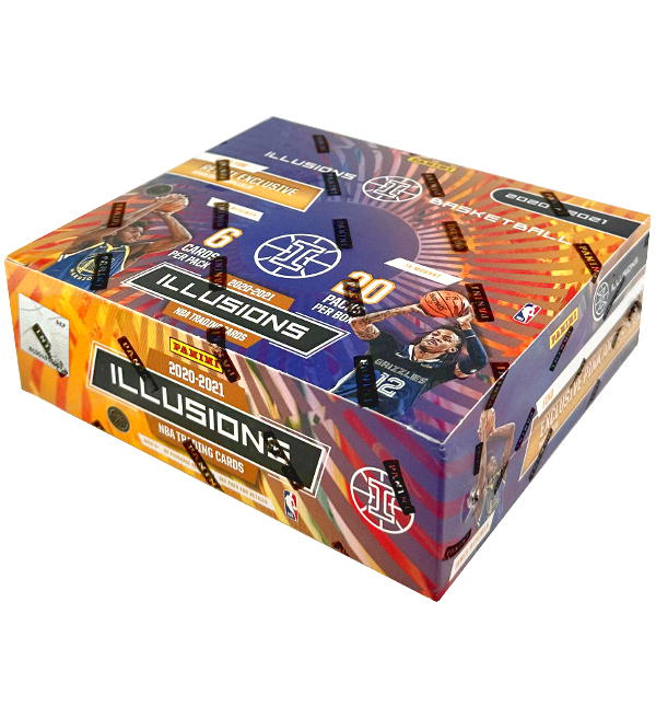 Retail Box with 20 packets for "Panini Illusions Basketball NBA 2020/21" Trading Card collection. Each booster contains 6 cards, which makes a total number of 120 cards per box.