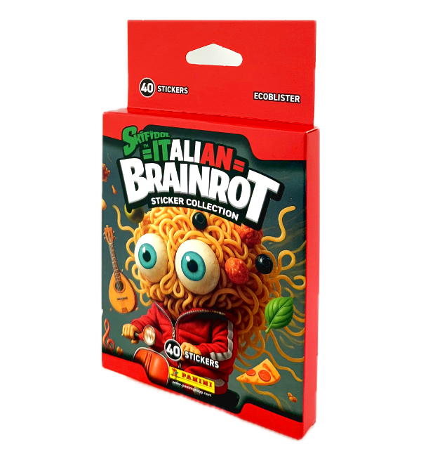 Eco-Blister (=8 packets) for the sticker collection "Panini Skifidol Italian Brainrot". Each packet contains 5 stickers.
