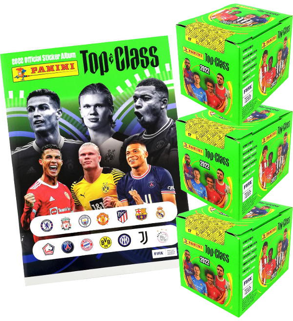 Album + 3 boxes (=150 packets) for the sticker collection "Panini Top Class 2022". Each packet contains 5 stickers.