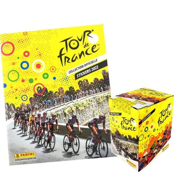 Album + 1 box with 36 packets for the sticker collection "Panini Tour de France 2022". Each packet contains 5 stickers.