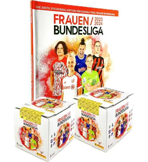 Hardcover Album + 2 boxes (=72 packets) for the sticker collection "Panini Women's Bundesliga 2023-2024". Each packet contains 6 stickers.