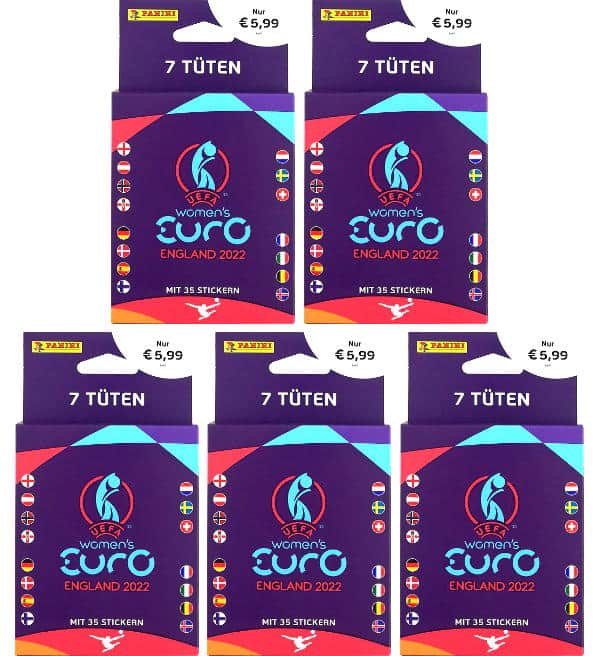 5 x Blister (=35 packets) for the sticker collection "Panini Women's Euro 2022". Each packet contains 5 stickers.