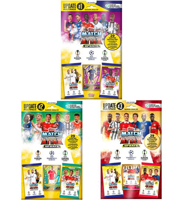 Update Multipack Set (Update Multipacks #1, #2 & #3) of "Topps Champions League Match Attax 2022/23" collection including: