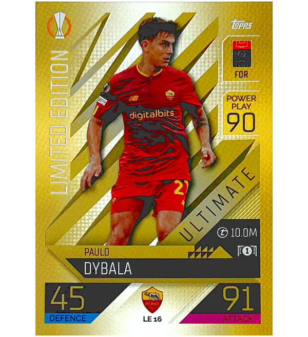 Gold Limited Edition Card LE16 Paulo Dybala (AS Rom) of Topps Champions League Match Attax 2022/23 EXTRA Trading Cards collection..
