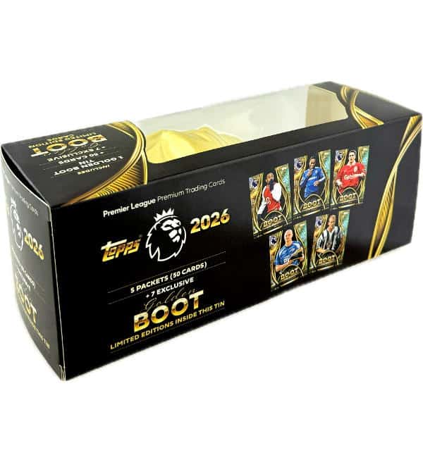 Golden Boot Tin for Topps Premier League 2026 Debut Edition Trading Cards collection including: