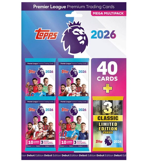 Mega Multipack for Topps Premier League 2026 Debut Edition Trading Cards collection including: