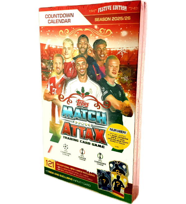 The Topps UCC Champions League Match Attax 2025/26 Countdown Calendar (advent calendar) with: