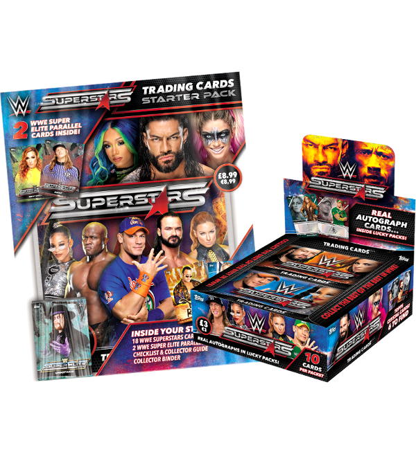Starterpack + Box for Topps WWE Superstars 2021 Trading Cards collection including: