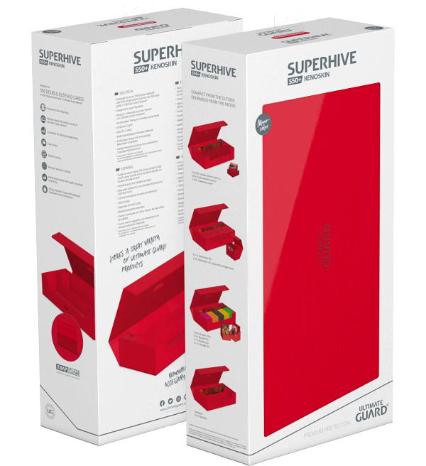 The Superhive offers space for everything you will need during your gaming encounters. With compartments for multiple deck cases, two play-mats and accessories, the Superhive is offering you endless usages. Ideal in combination with Ultimate Guard Sidewinders, you can place up to 550+ double-sleeved, 650+ single-sleeved cards or 1100+ unsleeved cards in standard size into the box. The ZnapClaw magnetic closure keeps the Superhive closed at all times.