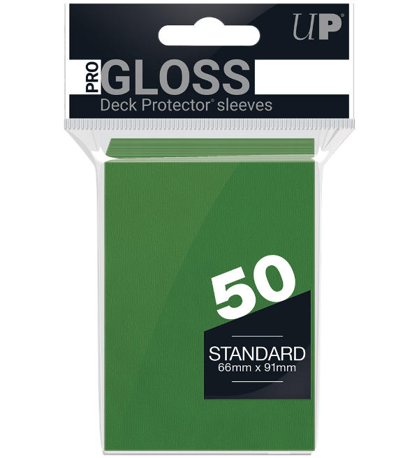 Made with acid-free, non-PVC polypropylene materials, the green PRO-Gloss Deck Protector sleeves will keep your cards safe from scratches and wear. The high-clarity gloss finish will display every beautiful detail of your cards, while the textured matte back keeps cards from sticking together and provides a smooth shuffle. Each pack includes 50 standard size sleeves, which fit both Pokémon and Magic: the Gathering trading cards. You’ll know it’s Ultra PRO quality when you see the heat transferred holographic stamp.
