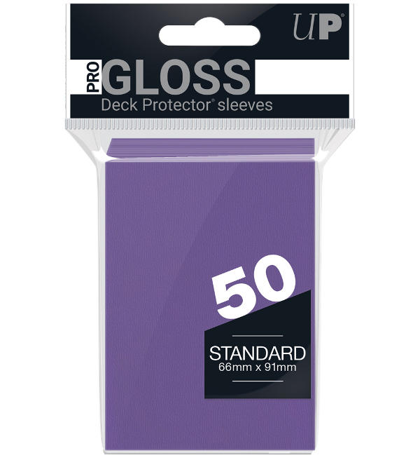 Made with acid-free, non-PVC polypropylene materials, the purple PRO-Gloss Deck Protector sleeves will keep your cards safe from scratches and wear. The high-clarity gloss finish will display every beautiful detail of your cards, while the textured matte back keeps cards from sticking together and provides a smooth shuffle. Each pack includes 50 standard size sleeves, which fit both Pokémon and Magic: the Gathering trading cards. You’ll know it’s Ultra PRO quality when you see the heat transferred holographic stamp.
