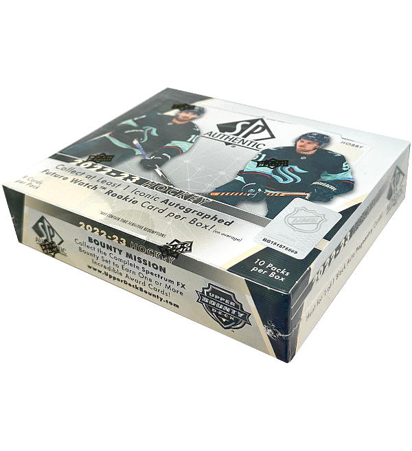 Hobby Box with 12 packets for "Upper Deck NHL 2022-23 Hockey - SP" Trading Card collection. Each booster contains 12 cards, which makes a total number of 144 cards per box.