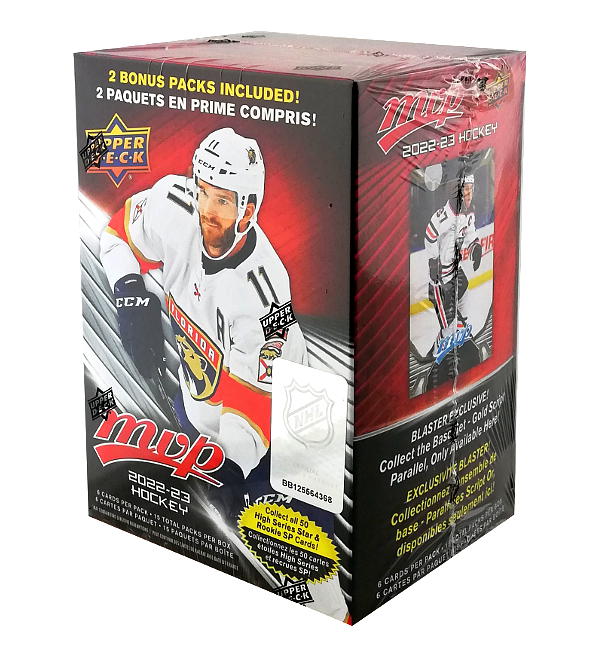 Blaster Box with 15 Booster Packs (=90 cards) for "Upper Deck NHL 2022-23 MVP Hockey" Trading Card collection.